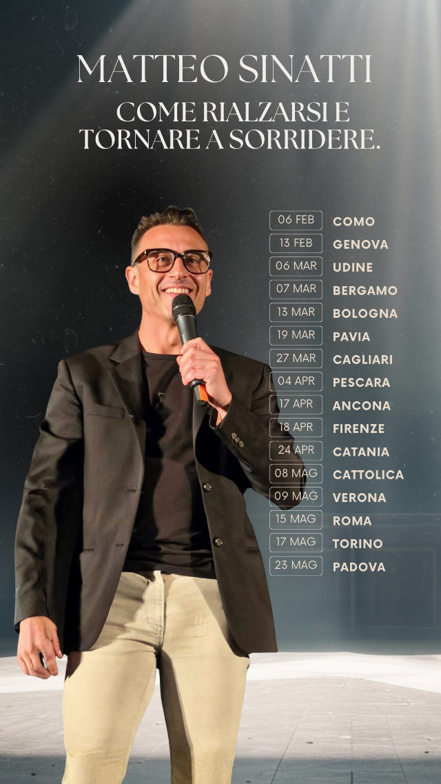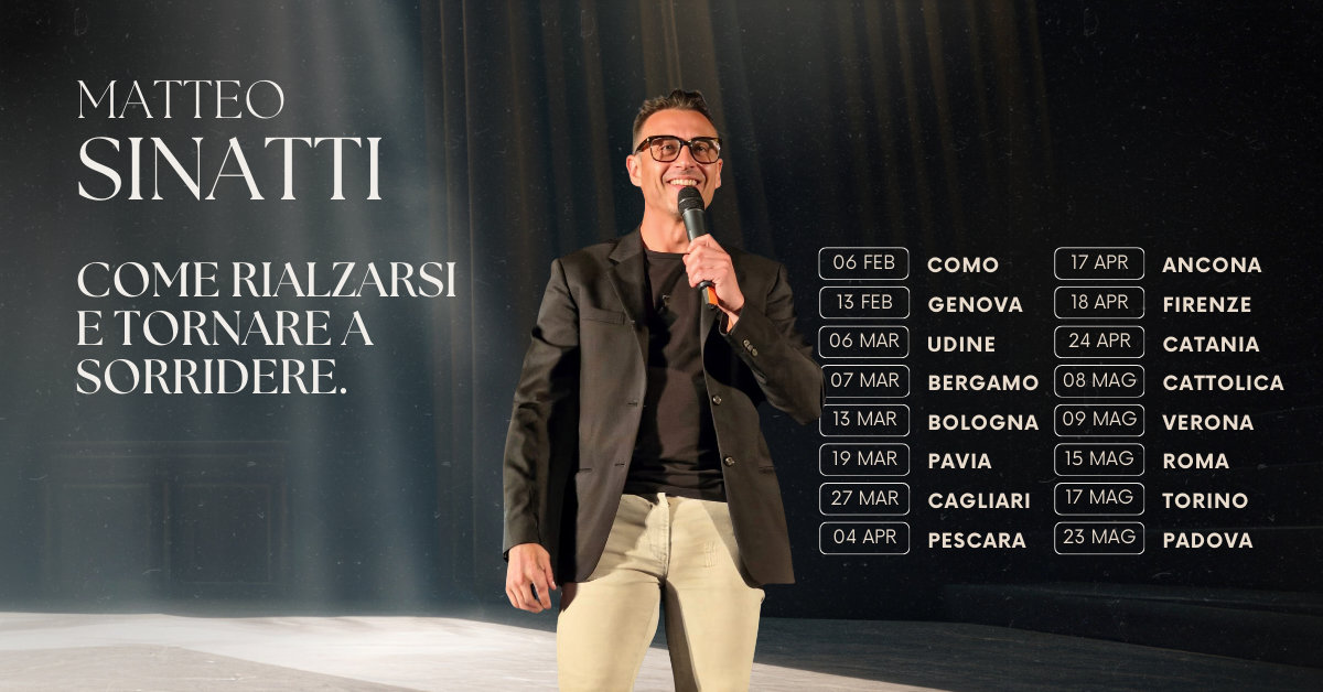 Sul palco, Matteo Sinatti, guiderà il pubblico con ironia, parole semplici, profonde e vere, intrecciando racconti, riflessioni e strumenti capaci di parlare a chiunque abbia vissuto una caduta e che desidera rialzarsi.